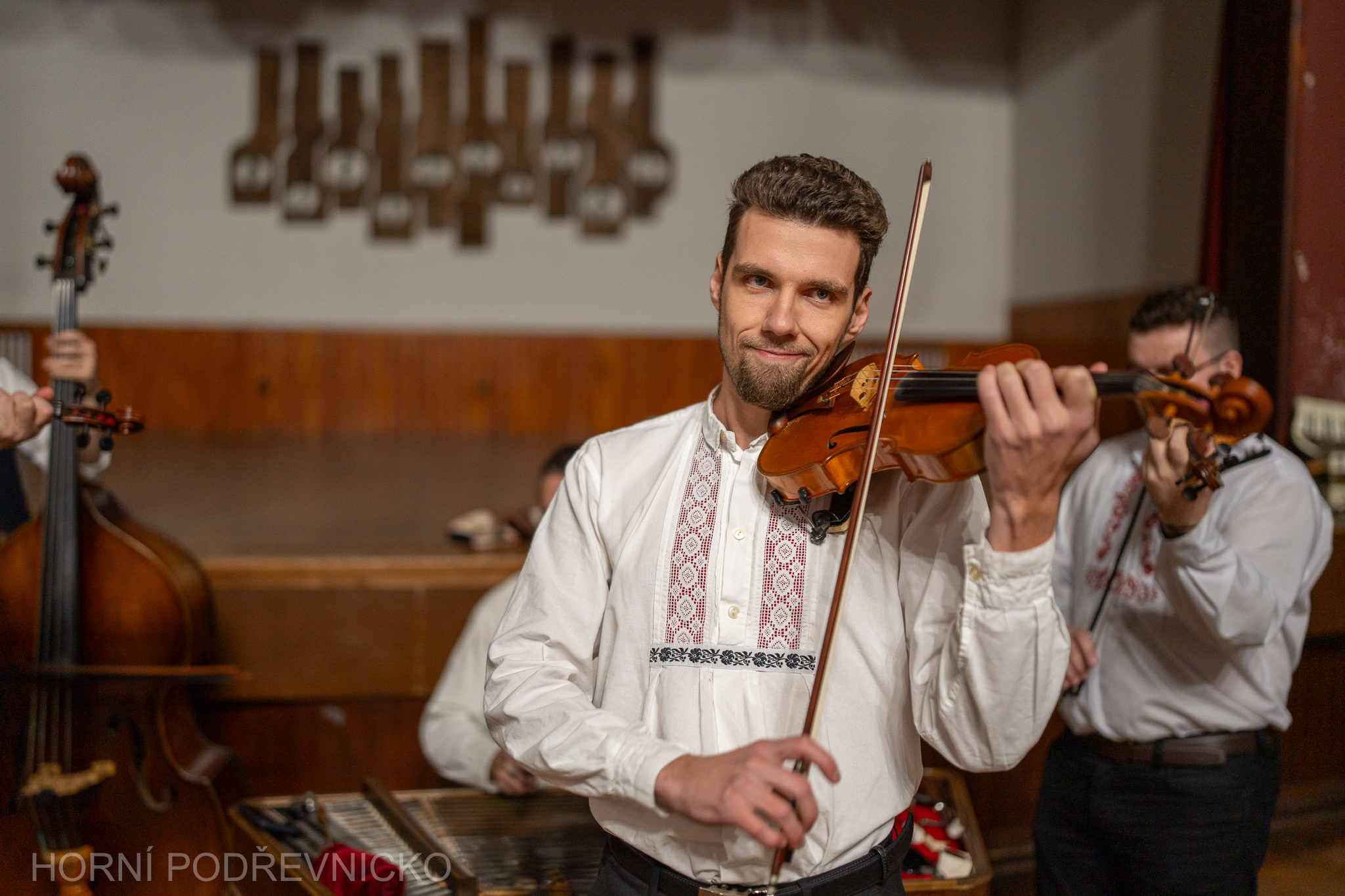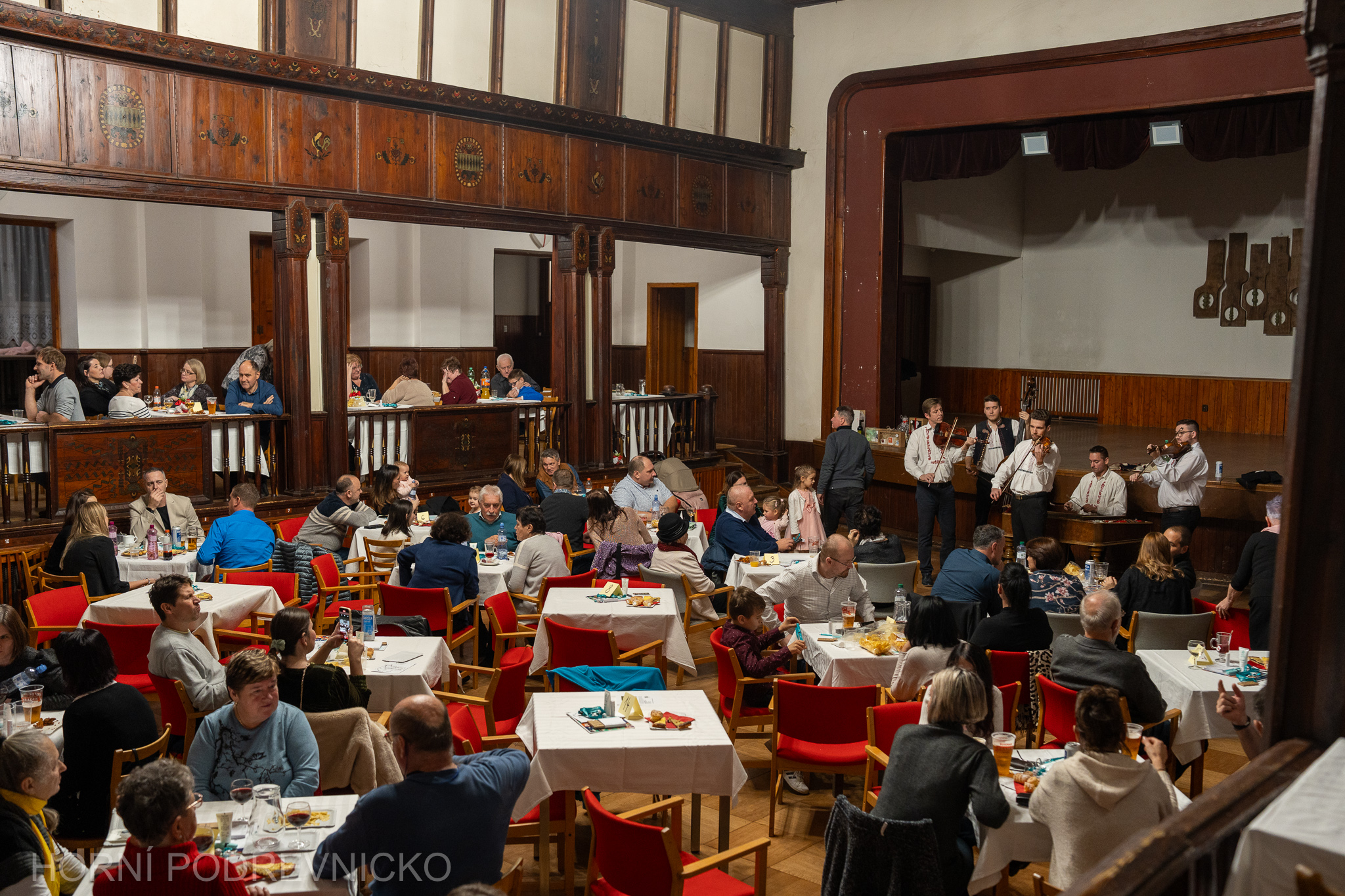 Atmosféru večera krásně dotvořila cimbálová muzika Vincúch s hosty. Pod vedením primáše Robina Červinka zahráli Antonín Bruštík, Michal Buchsa, Filip Červinek a David Dorňák.