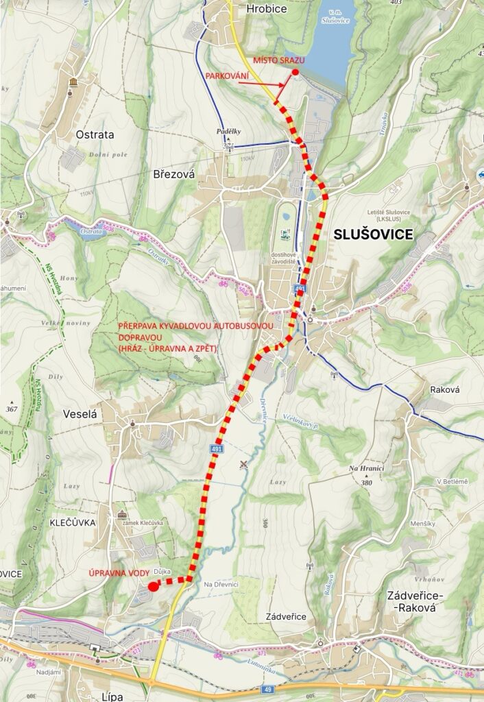 Sraz zájemců o prohlídku bude u domku hrázného (parkování bude možné na asfaltové komunikaci vedoucí k hrázi). Prohlídka bude probíhat na koruně hráze, v odběrné věži a ve strojovně spodních výpustí. Pro zájemce o prohlídku úpravny vody ve Zlíně – Klečůvce bude k dispozici kyvadlová autobusová doprava od domku hrázného k úpravně vody a zpět. Více informací pro návštěvníky obou vodohospodářských objektů je v přiloženém letáku a na stránkách a sociálních sítích společnosti Vodovody a kanalizace Zlín, a.s.