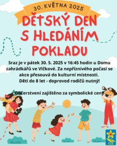 Sraz je pátek 30.5.2025 v 16:45 hod. u Domu zahrádkářů ve Vlčkové. Za nepříznivého počasí se akce přesouvá do kulturní místnosti. Děti do 8 let – doprovod rodičů nutný! Občerstvení zajištěno za symbolické ceny.