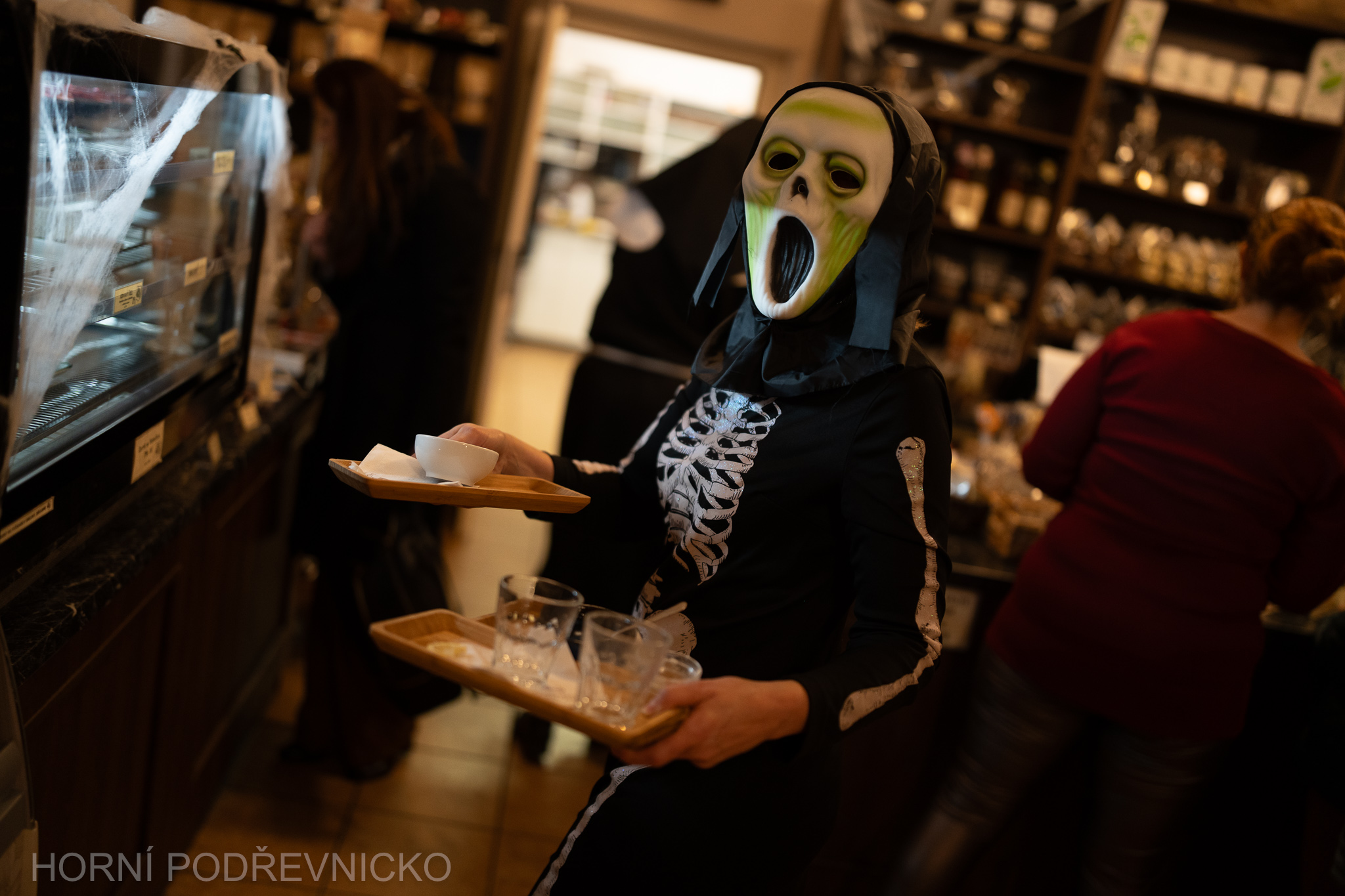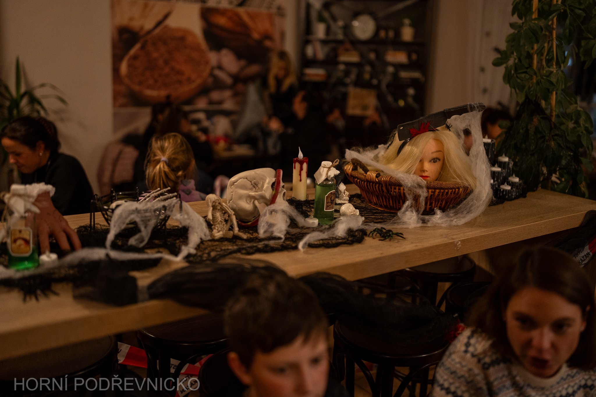 Čekání na prohlídku si návštěvníci tradičně mohli zpříjemnit v zámecké čokoládovně, která se proměnila v království sladkých strašidel.