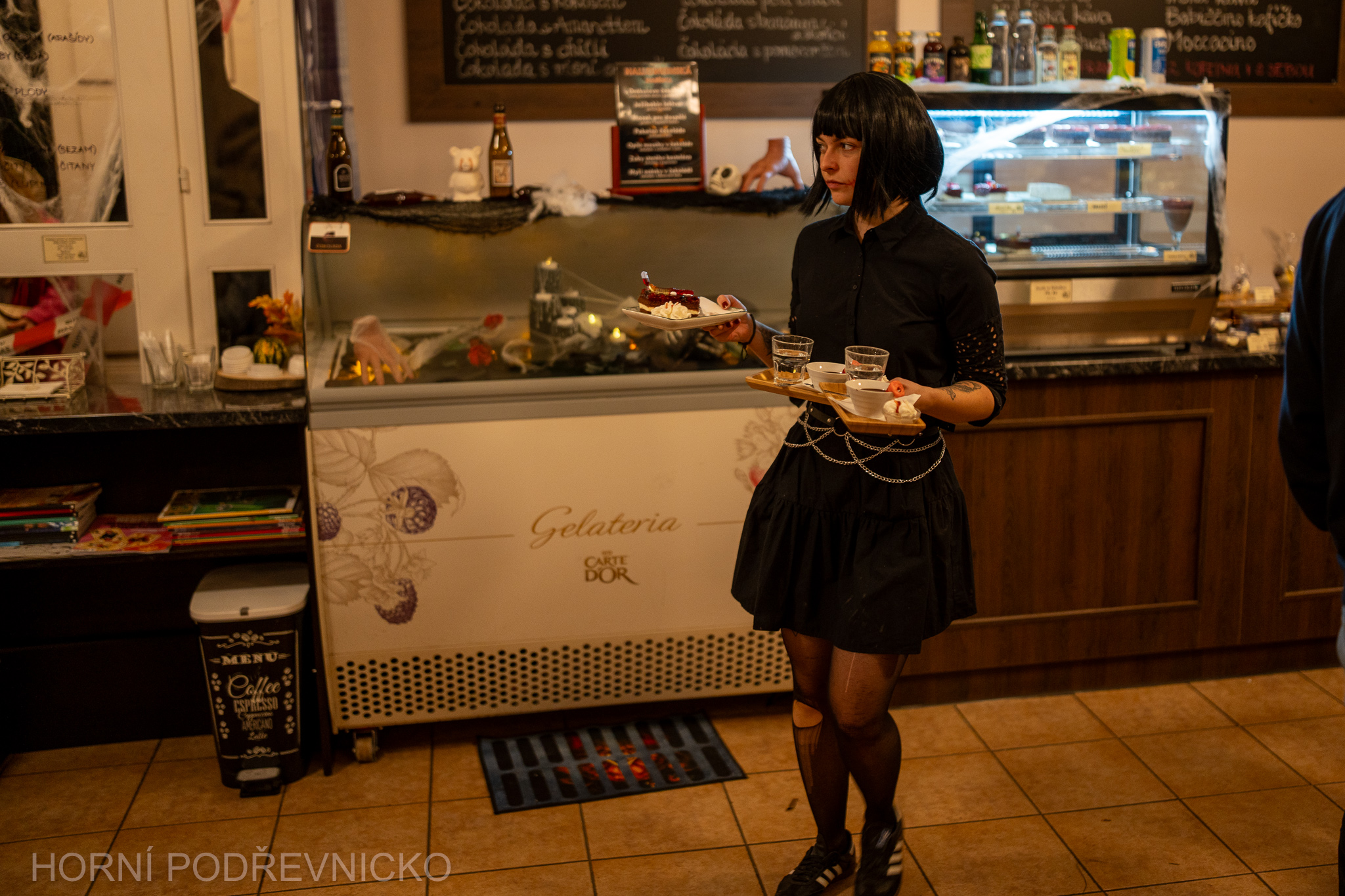 Halloweenská nabídka tu lákala na originální dobroty s kapkou tajemna. Co jste si mohli dát? Třeba rakvičku strýčka Drákuly nebo pavoučí hnízdo – delikatesy, které nejen potěšily chuťové buňky, ale i dokonale doplnily strašidelnou atmosféru zámku.