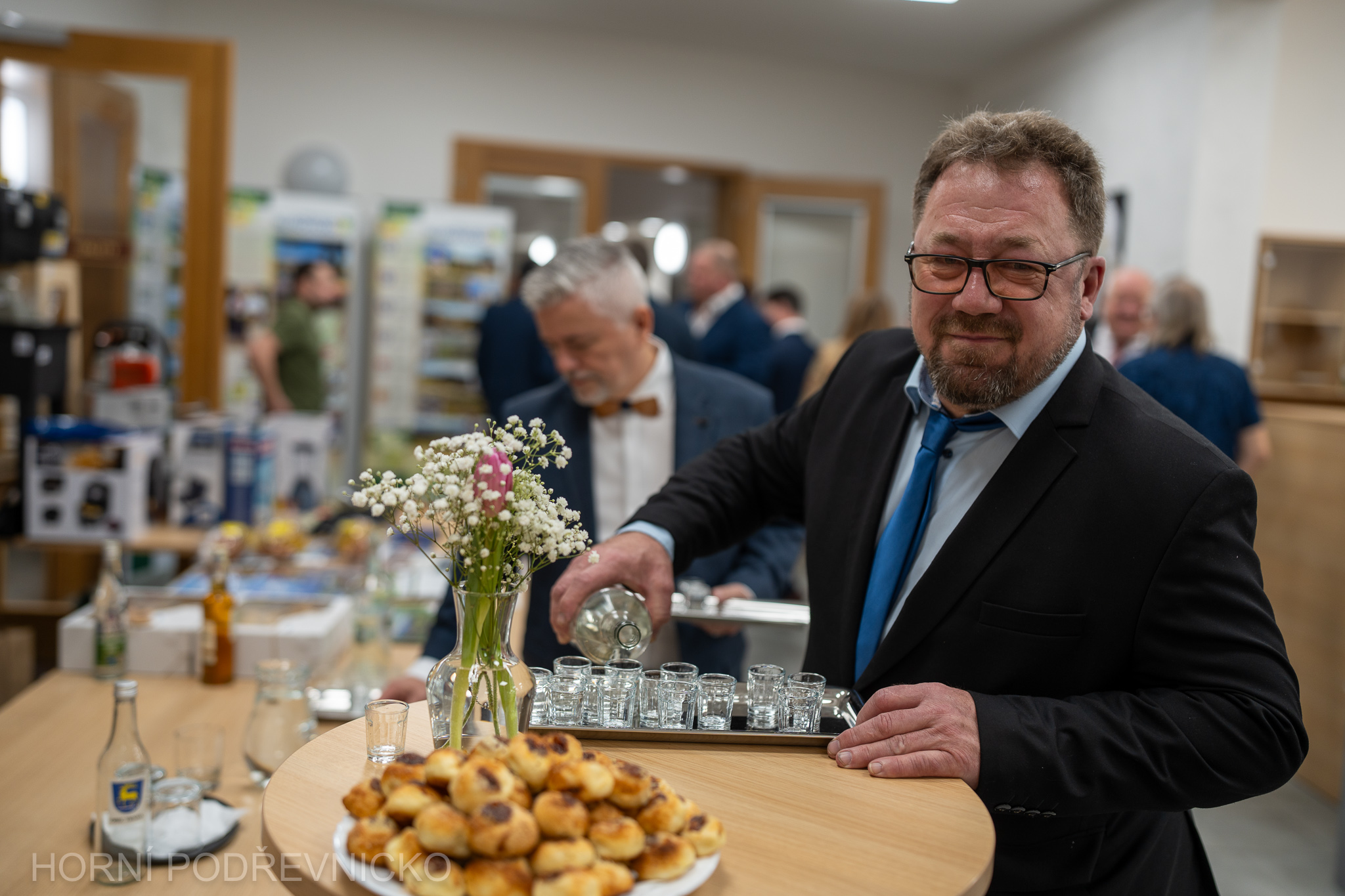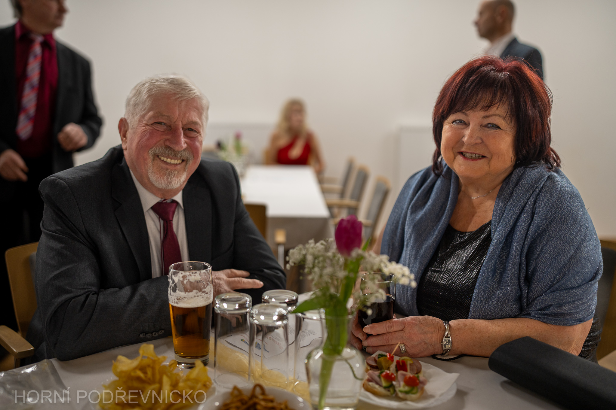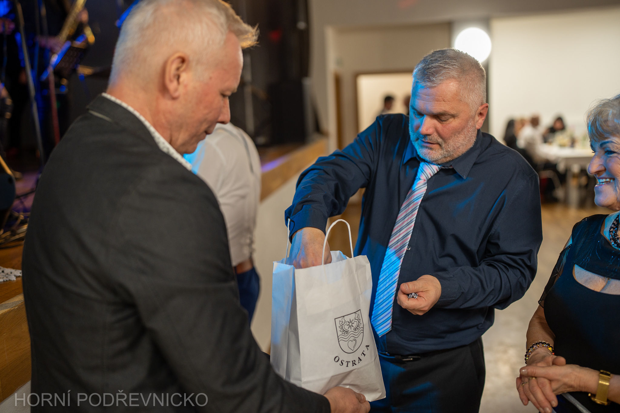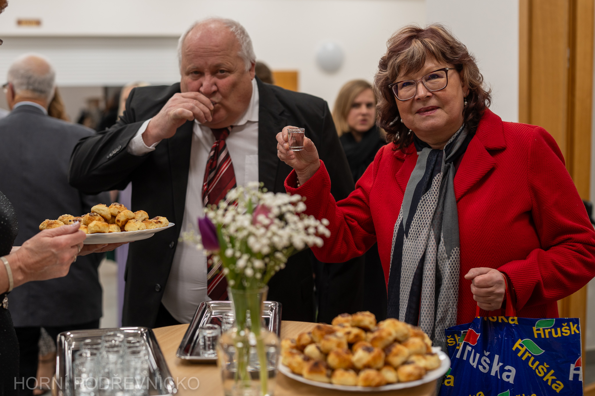 Večer zahájil krátkým proslovem předseda Mikroregionu Slušovicko Daniel Juřík, který přivítal hosty a poděkoval všem, kteří se na přípravě plesu podíleli. Pak už se slova ujal Arnošt Horák, starosta pořadatelské Ostraty, který s mikrofonem provázel hosty celým večerem. Mimochodem – na jeho usměvavé a především pilné spoluobčany jste během večera narazili všude, od šatny přes výčep a vinný koutek až po tombolu či kuchyň. Starostové dalších členských obcí pak tradičně vítali hosty slivovicí a vdolečkem.