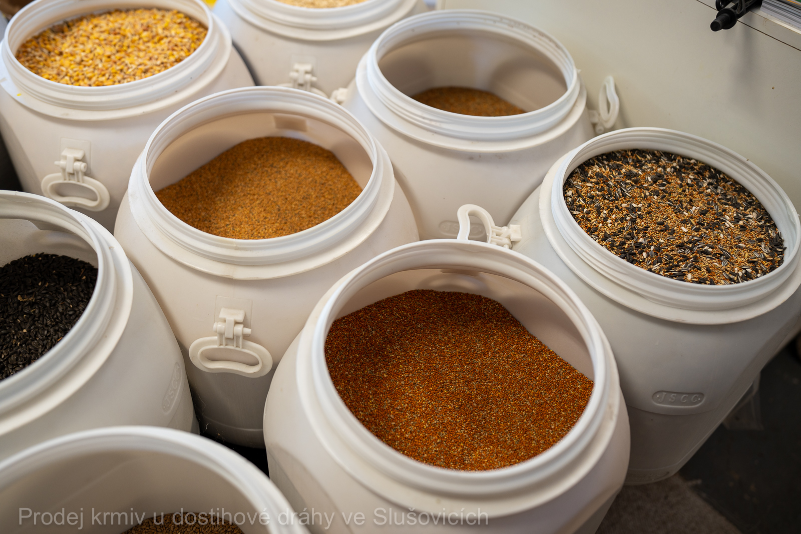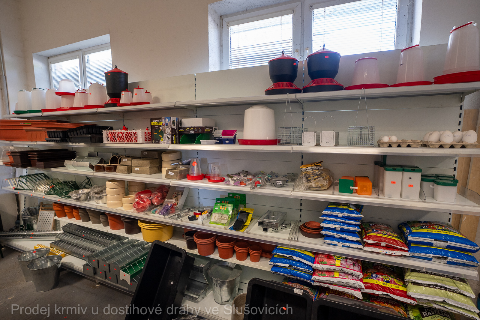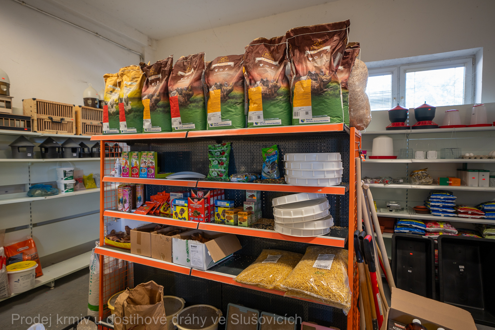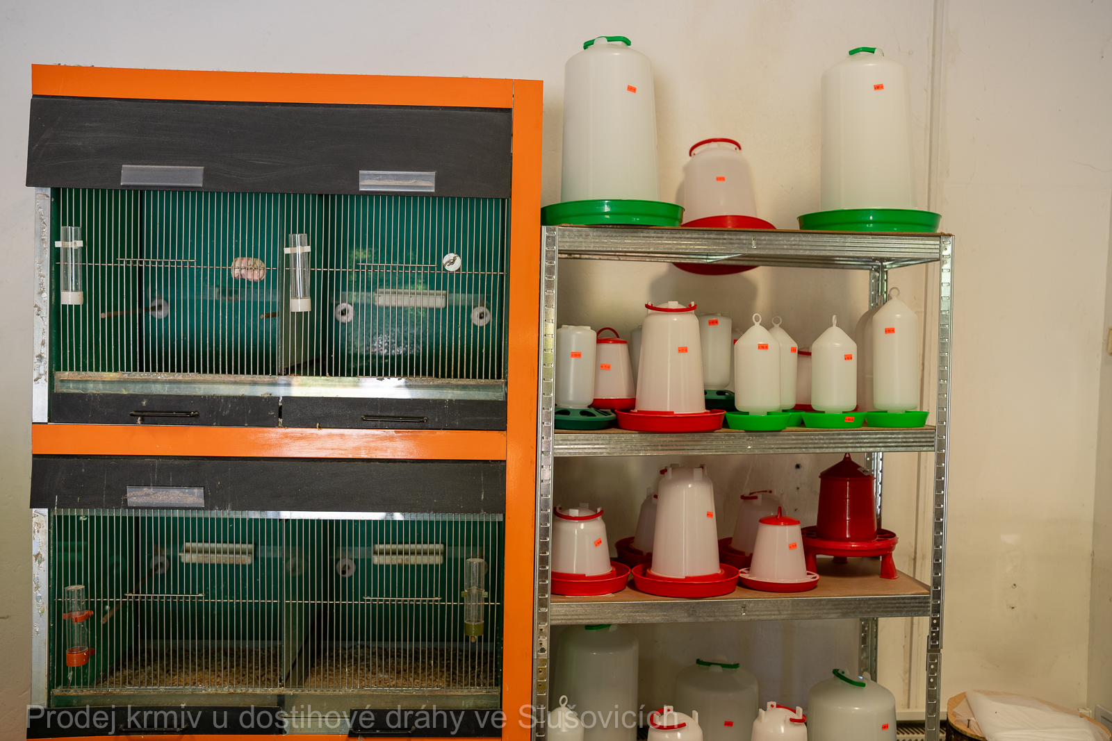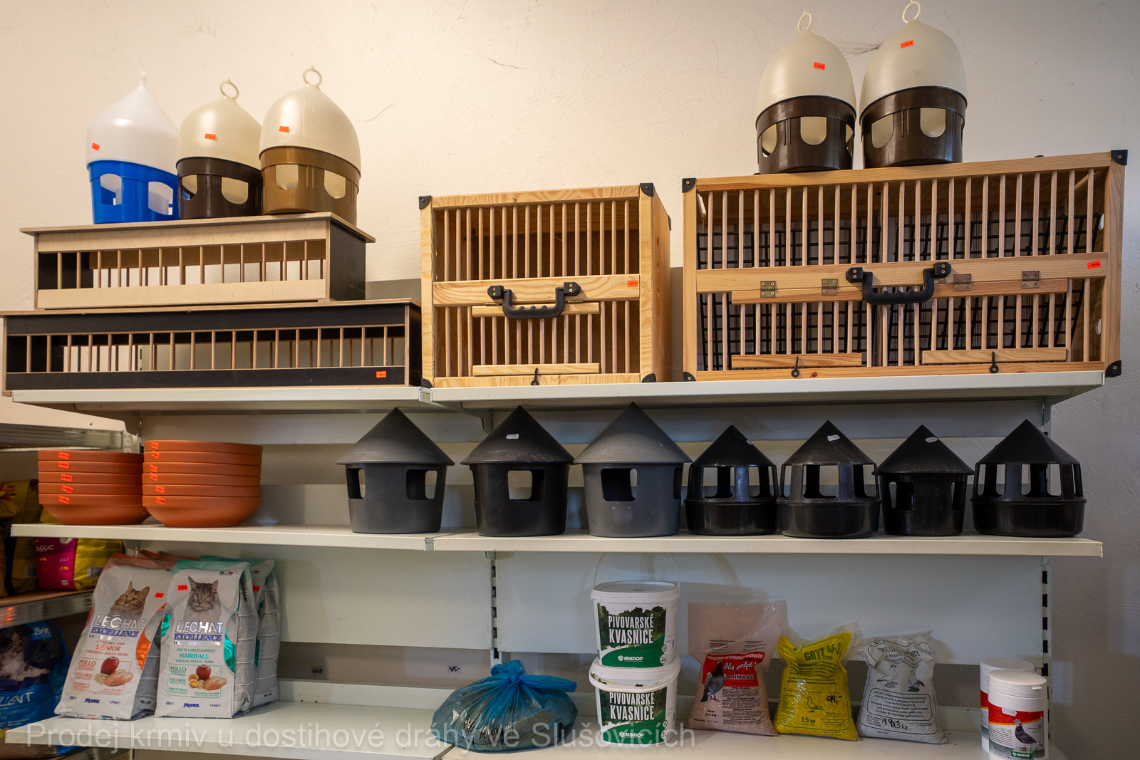Součástí nabídky jsou také chovatelské potřeby – především napáječky, zásobníková krmítka, misky, kbelíky, podavače a přepravky pro drůbež a holuby, včetně minerálních doplňků a gritu.