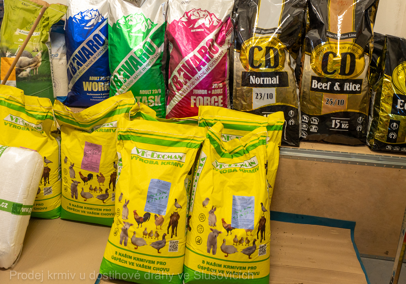 Nabízíme krmiva pro domácí i hospodářská zvířata, a to jak v běžných pytlovaných baleních, tak také krmné směsi a zrno na váhu. Obsluha naváží přesné množství podle potřeby – od doplnění zásob až po větší odběry pro chovy a stáje.