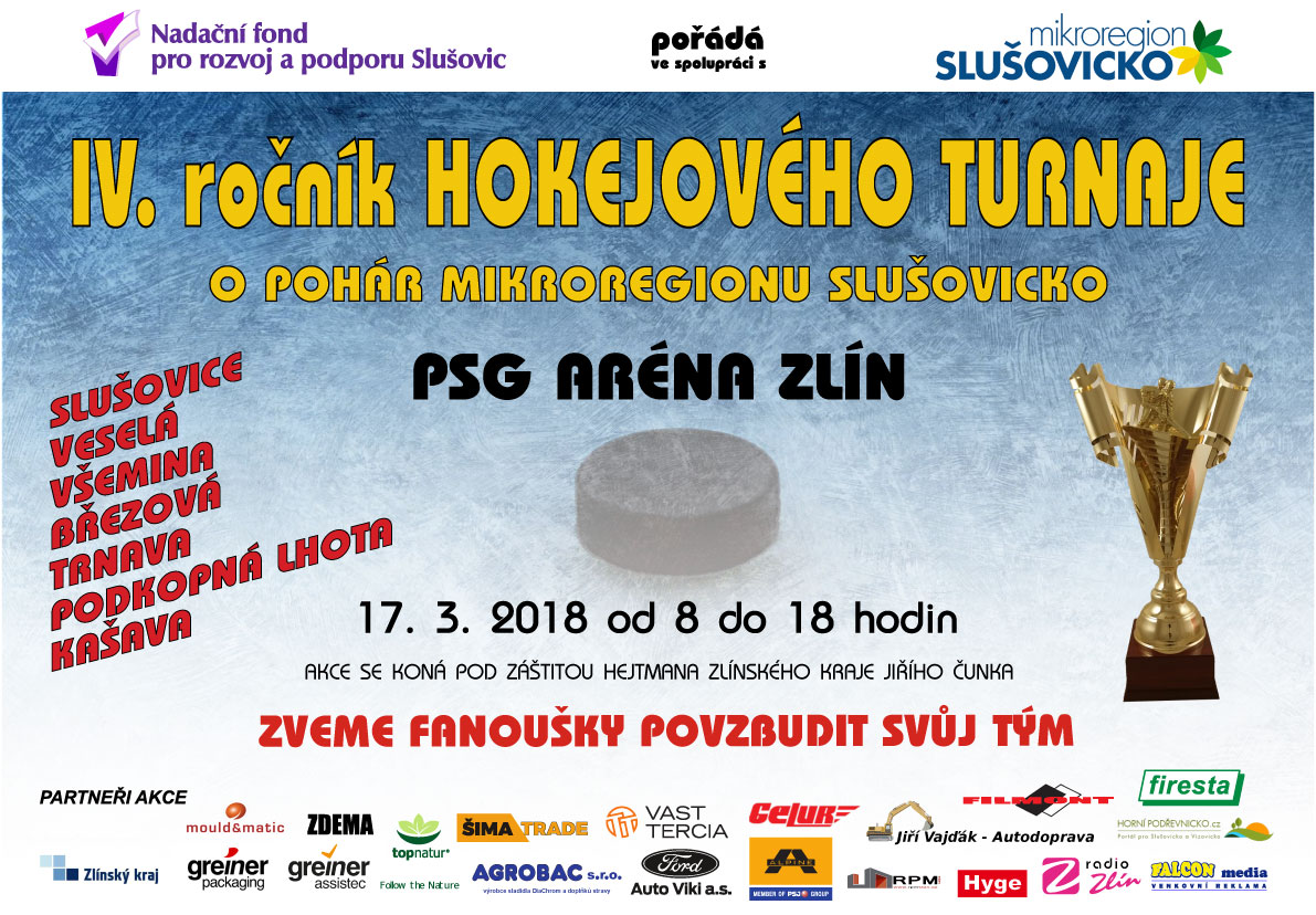 Po třech úspěšných ročnících Hokejového turnaje o putovní pohár Mikroregionu Slušovicko, ve kterých triumfovala dvakrát Kašava a naposled loni hokejový tým Slušovic, finišují přípravy na ročník čtvrtý. Ten se letos pod záštitou hejtmana Zlínského kraje Jiřího Čunka uskuteční v termínu 17. března, opět ve zlínské PSG Aréně od 8 do 18 hodin.