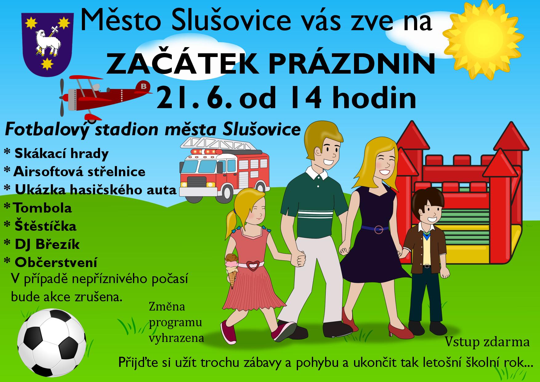 Město Slušovice zve rodiče a jejich děti v pátek 20. 6. 2025 od 13:30 hodin na fotbalový stadion. U příležitosti ukončení školního roku a začátku prázdnin zde budou pro děti přichystány skákací hrady, občerstvení, tombola… Zábavu zajistí DJ Březík.