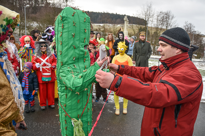 Fašank ve Všemině skutečně není mrtvý, jak anglicky hlásá nápis na zvacím plakátu, žebřiňáku či zádech indiána. Už dvacet let se desítky maškar scházejí na „Horní točně“ aby od starosty vyžádaly klíč od obce. V sobotu tak v bujaré masopustní atmosféře učinil osobně kaktus! S koňským povozem a živou kapelou pak průvod zpívá a tancuje dům od domu skrze předlouhou obec Všemina.