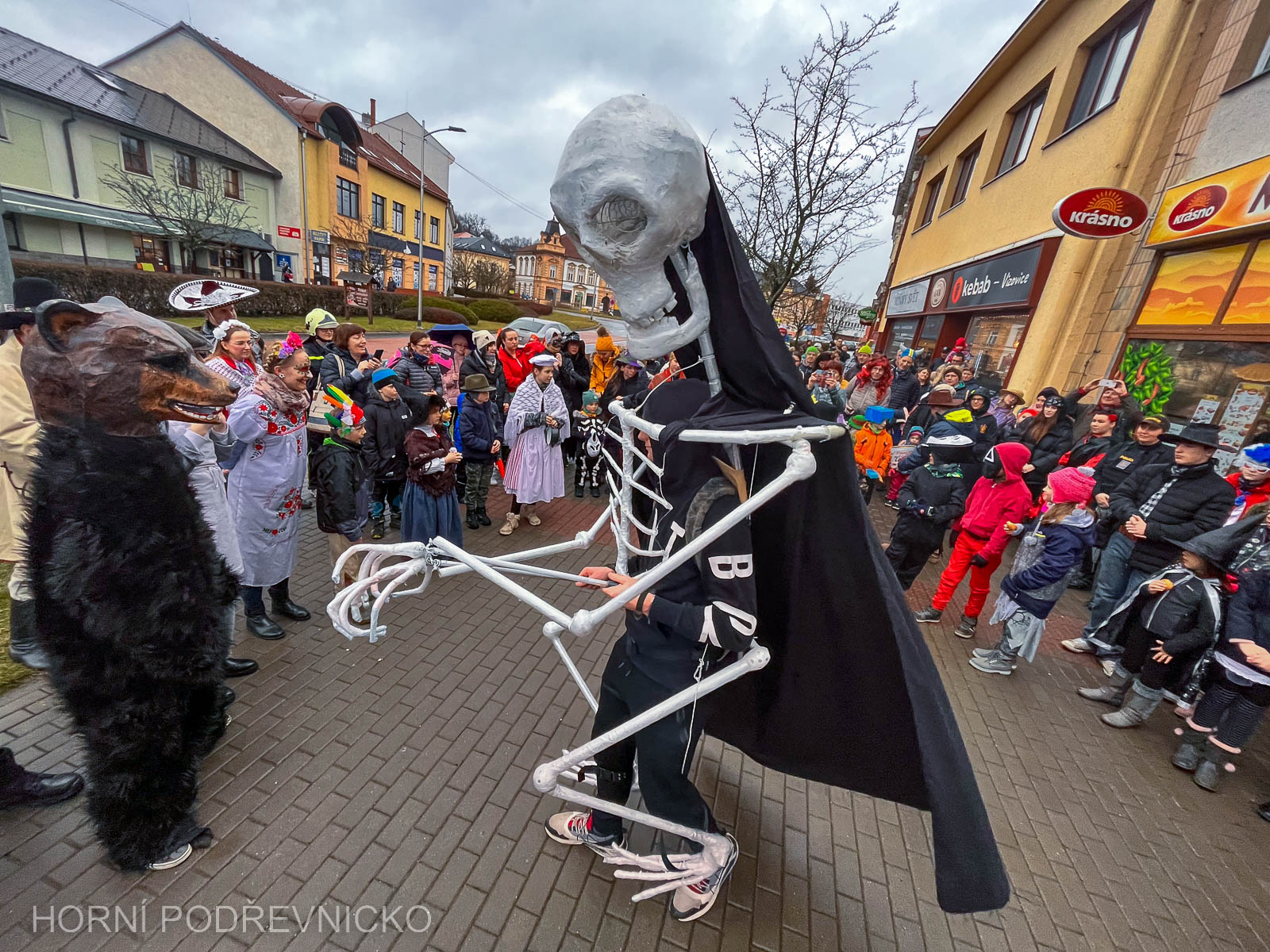 Přesně tento pocit musel mít každý, kdo se průvodu a veselky na co chvíli deštivém Masarykově náměstí zúčastnil. Do centra města přinesly hospodyňky masopustní koblížky a další občerstvení a když se spustil silnější déšť, průvod jej přečkal v „kulturáku“, aby se pak na náměstí vrátil a dokončil plánovaný hudební program Vizovjánku a cimbálové muziky Ocún.
