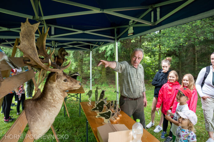 Program dne zahájila ve dvě odpoledne procházka od neubuzské Myslivny do Lesoparku Bílá Hlína. Tam rodiny s dětmi čekala přehlídka dravců s odborným výkladem. Trasa dále pokračovala bujně rostlým zeleným lesoparkem – zábavnou stezkou v ryze mysliveckém duchu. Především děti ale i rodiče poznávali listy a plody lesních stromů, druhy zvířat i jejich potravu, na programu byla třeba střelba ze vzduchovky. Velký zájem byl také o stanoviště schované v tmavém lese, kde děti hledaly ukryté paroží lesní zvěře či prohlídku opravdových loveckých zbraní. Stezka byla delší než bývá obvyklé a tak byl dančí guláš i ostatní dobroty v cíli oslav na myslivně zasloužené.