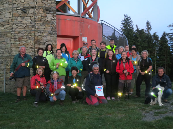 Letos byla příjemná teplota a téměř úplněk nám svítil na cestu. Hvězdy se postaraly o dobrou náladu. Startovalo se po 21. hodině z Vartovny, kde provedla prezentaci předsedkyně KČT Vizovice I. Křenková s paní Ing. Řezníčkovou ze Seninky. Foto výchozí skupiny a už se šlapalo přes Tanečnici v Pozděchově, kde byla první zastávka u táboráku. Pokračovalo se do Ubla a k chuti nám přišlo vhod odpočinutí u dobrého piva v hospodě u Zemské osy. Dokonce nás Ublané přivítali zpěvem. Pokračovali jsme do Bratřejova, kolem točny, směrem k Chrámečnému. To už byla tma, jen světýlka baterek prozrazovala, že parta nadšenců, kteří neznají únavu a jsou odhodláni nočnímu dobrodružství jít vstříc, se blíží k Doubravě. Šli mladí, starší i Eliška-pes.