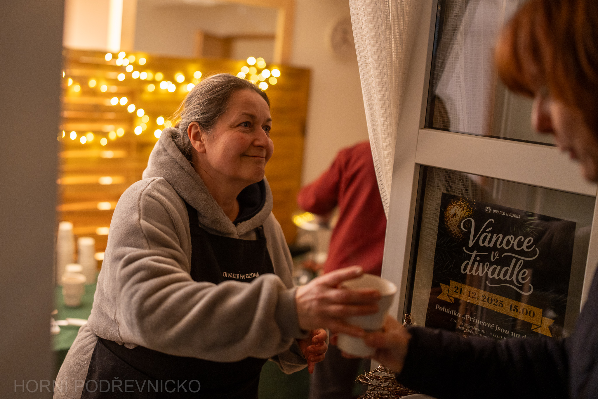 Nedělní pohádkové odpoledne byla vyvrcholením adventního programu „Vánoce v divadle“, který ve Hvozdné probíhal po celý advent. Sváteční atmosféru provázelo dění i před budovou – s vánočním občerstvením a tradičním adventním okénkem.