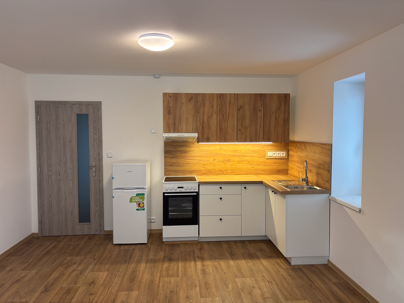 • Kuchyňský kout vč. lednice.