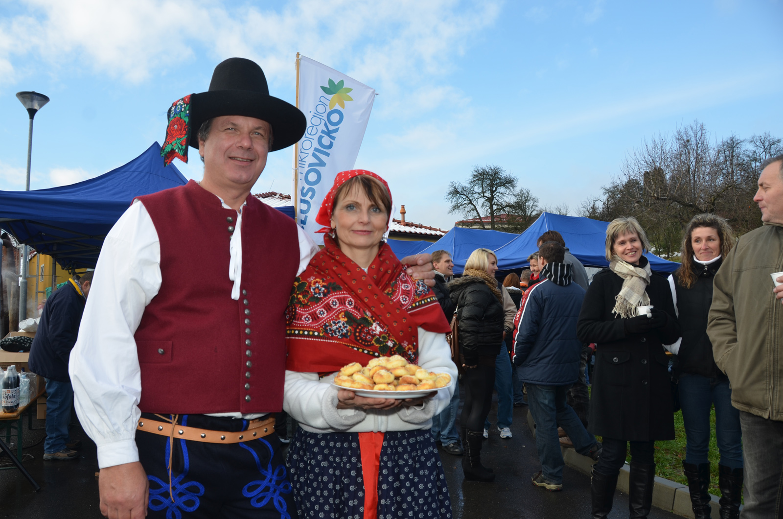 Když brzy ráno přijeli zástupci pořádajícího Mikroregionu Slušovicko na místo, aby dokončili přípravy stánků a dalších náležitostí jarmarku, vypadalo to s počasím nedobře. Mokrý sníh střídal déšť a hrozilo, že někteří prodejci či řemeslníci vůbec nepřijedou. „Přesvědčovala jsem některé z nich, aby dorazili, že se počasí umoudří.“ Víra či intuice dlouholeté aktivní spolupořadatelky Renaty Zábojníkové, starostky ze sousední Neubuzi, se nakonec stala skutečností. Srážky postupně ustaly a v poledne už nad zaplněnými prostorami sokolské zahrady svítilo slunce.